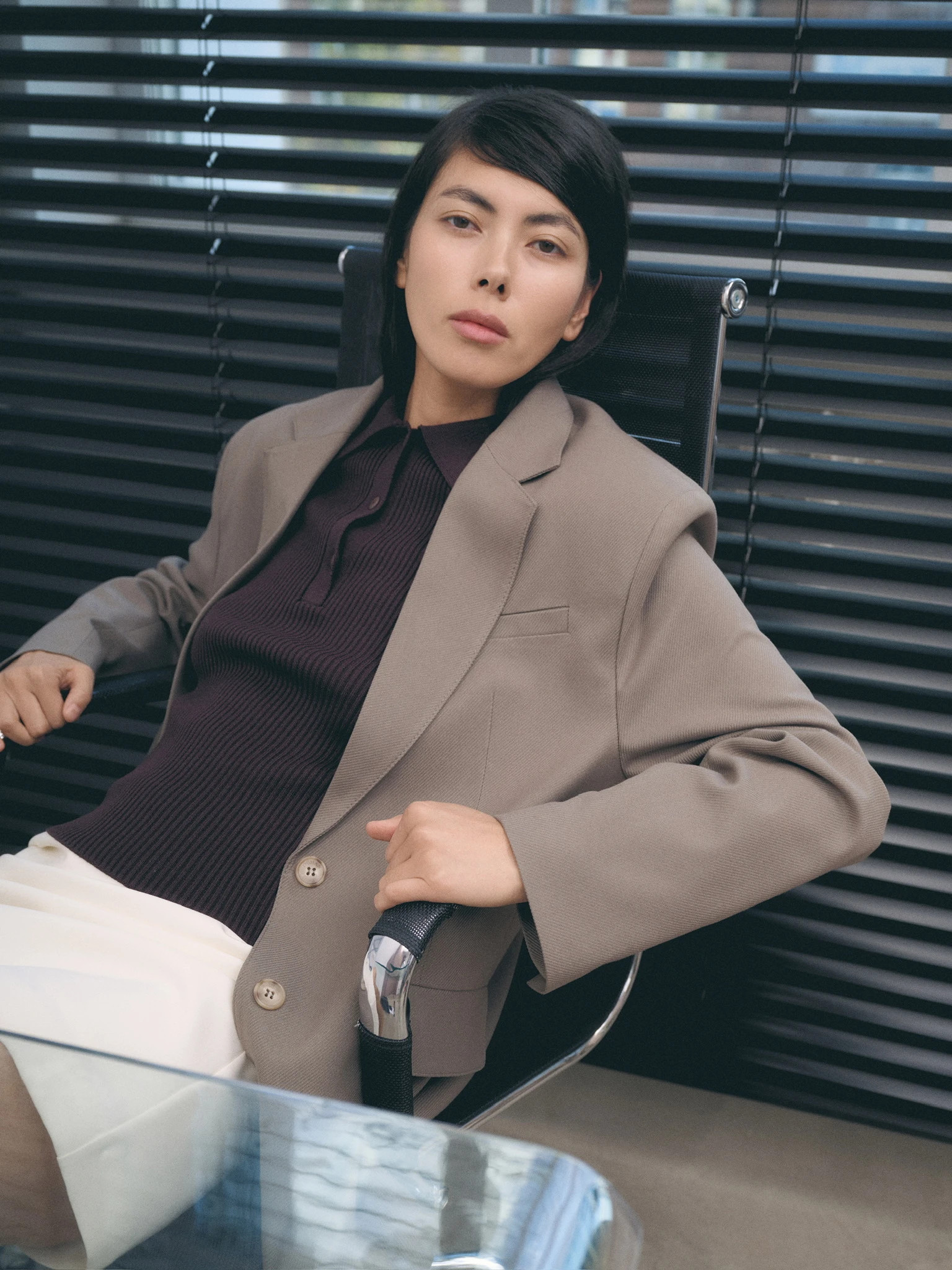 Однобортный объемный жакет прямого кроя с увеличенной линией плеча. Выполнен из мягкой фактурной костюмной ткани с подкладкой из поливискозы. Брендированные пуговицы украшают манжеты и центральную застежку, декоративная отстрочка на карманах и лацканах. Функциональная шлица сзади для комфортной носки.