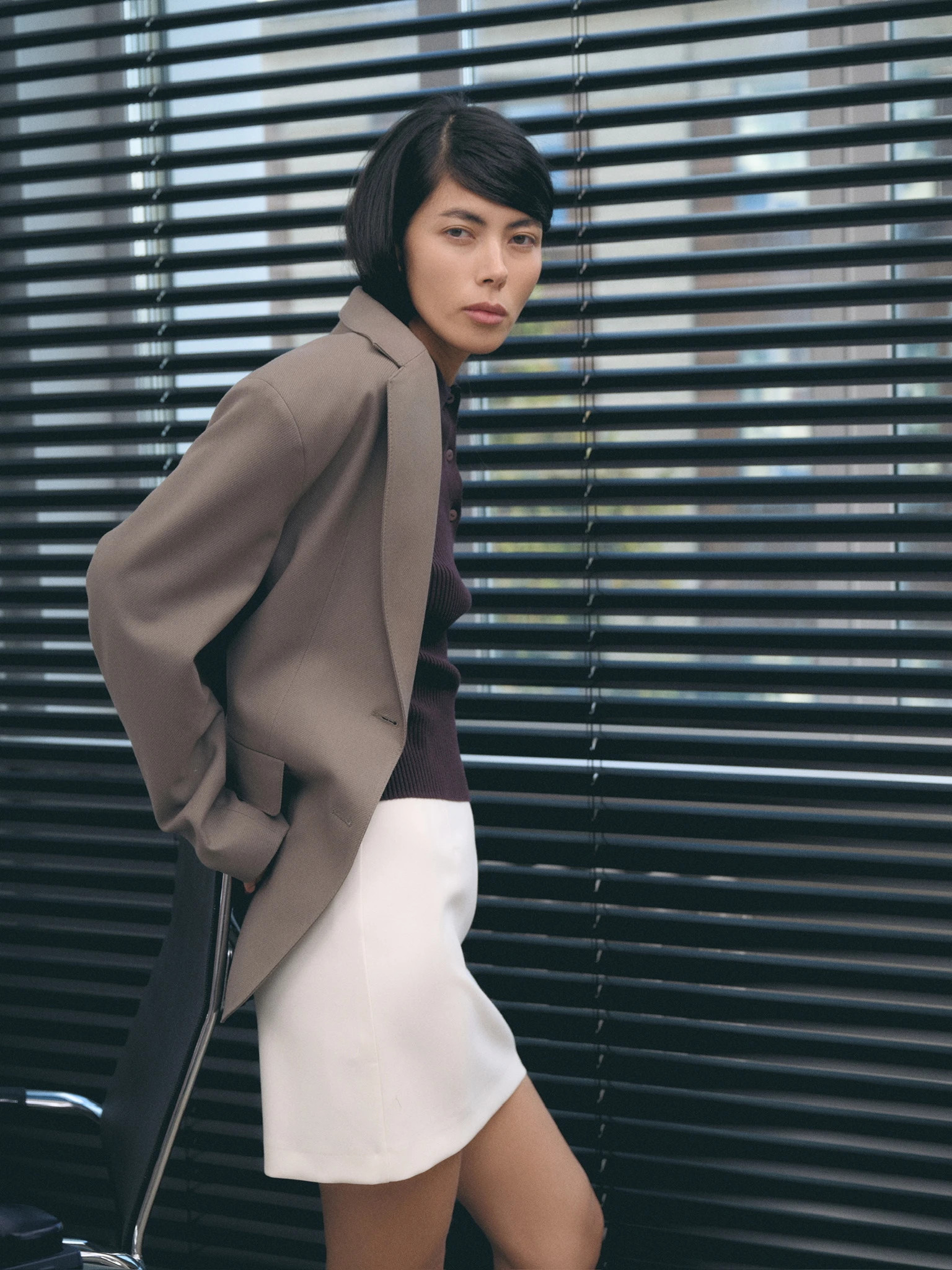 Пальто-пиджак из фактурной шерсти, шоколадный