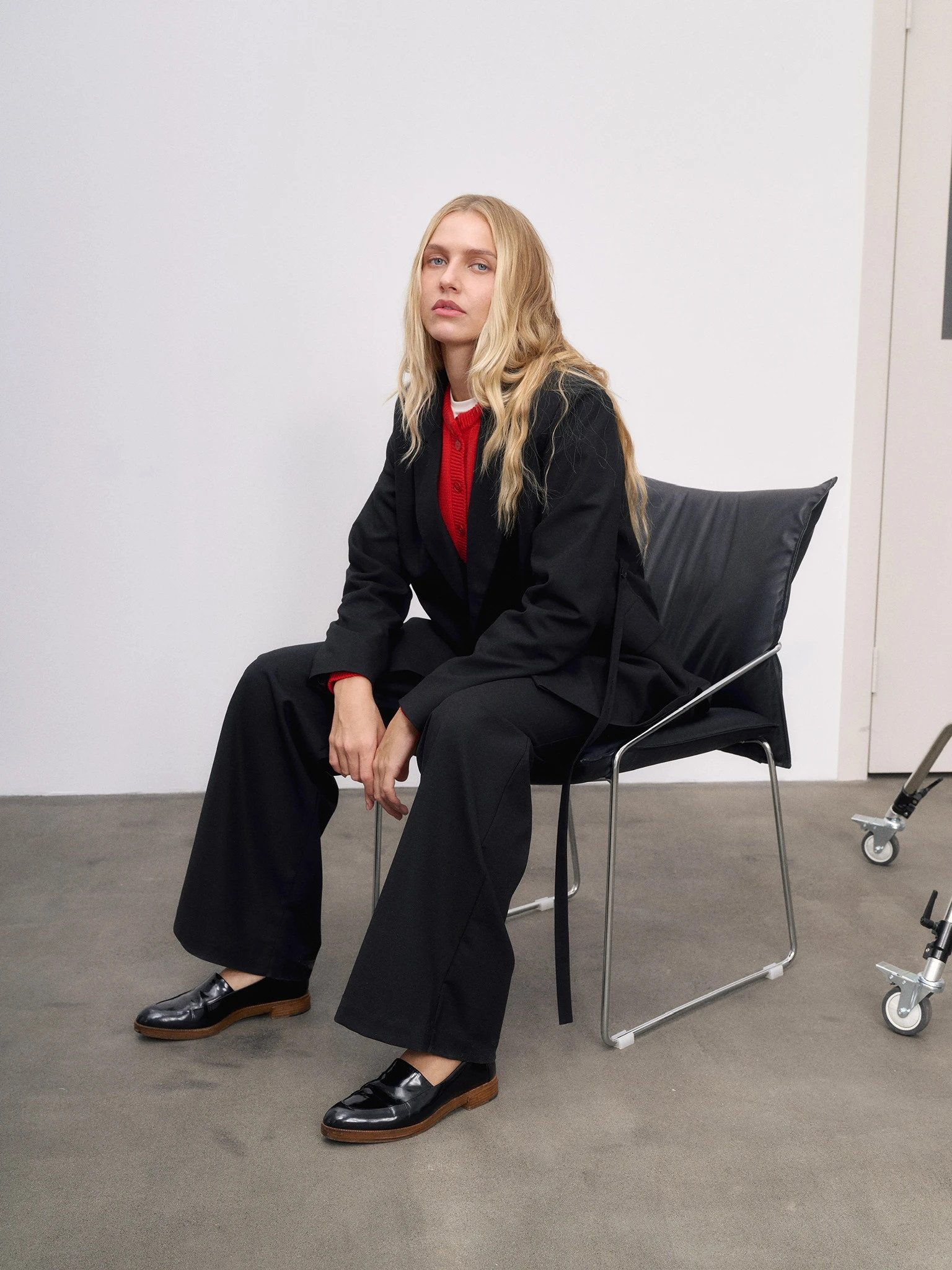 Однобортный жакет прямого кроя на подкладе из поливискозы. Из деталей: воротник с лацканами, втачной рукав, карманы-клапаны. Функциональный хлястик сбоку позволяет регулировать силуэт по вашему настроению. Жакет идеально дополнит образ с прямыми брюками из нашей коллекции.