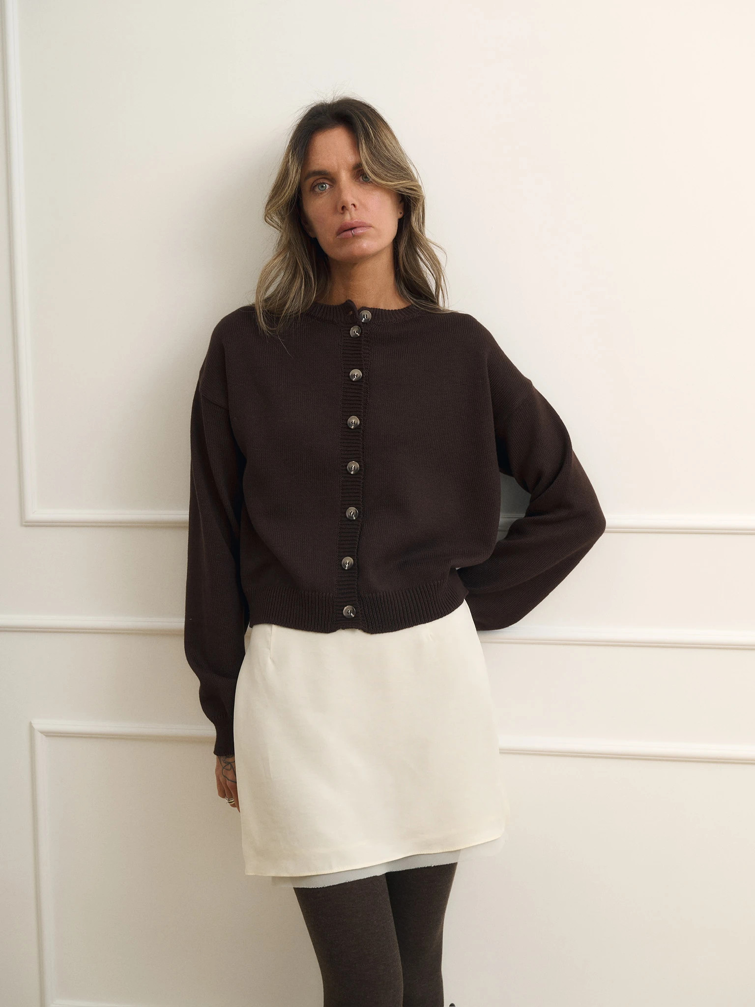 Пальто-пиджак из фактурной шерсти, шоколадный