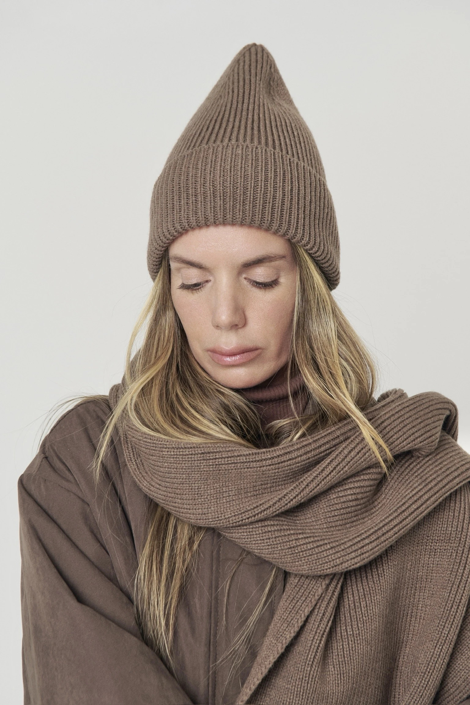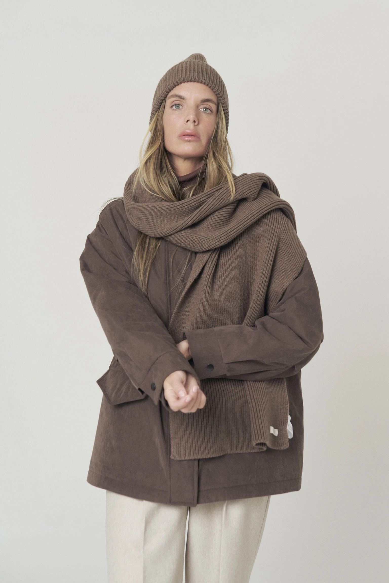 Комплект объемной вязки с шерстью: шапка+шарф, шоколадный